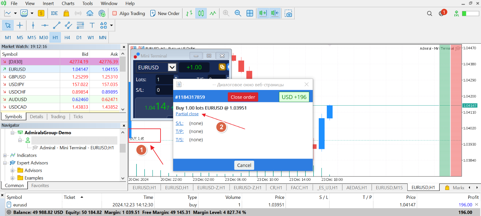 In the following points, we will explain how you can partially close a trade with MetaTrader Supreme Edition.
