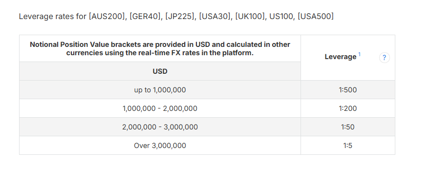 Si la cuenta de trading es de tipo minorista, debemos consultar los requisitos de margen para clientes minoristas en nuestra página de requerimientos de margen. El apalancamiento es fijo para los clientes minoristas y no varía con el valor nominal.
