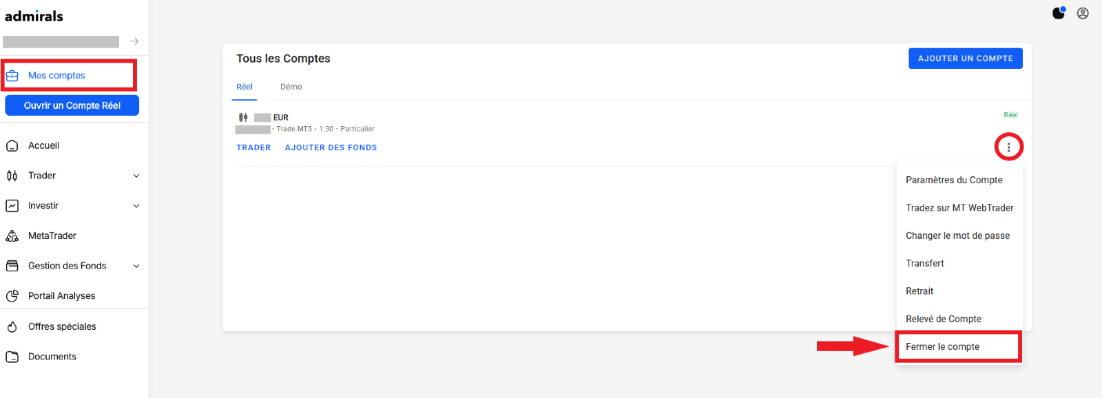 Afin de fermer votre compte de trading, veuillez vous connecter à votre Dashboard et suivre les instructions ci-dessous :