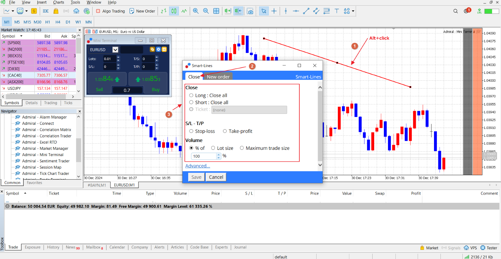 Si vous souhaitez fermer une transaction entièrement ou partiellement, vous pouvez également utiliser les Smart Lines à cette fin. Pour ce faire, suivez les étapes ci-dessous :