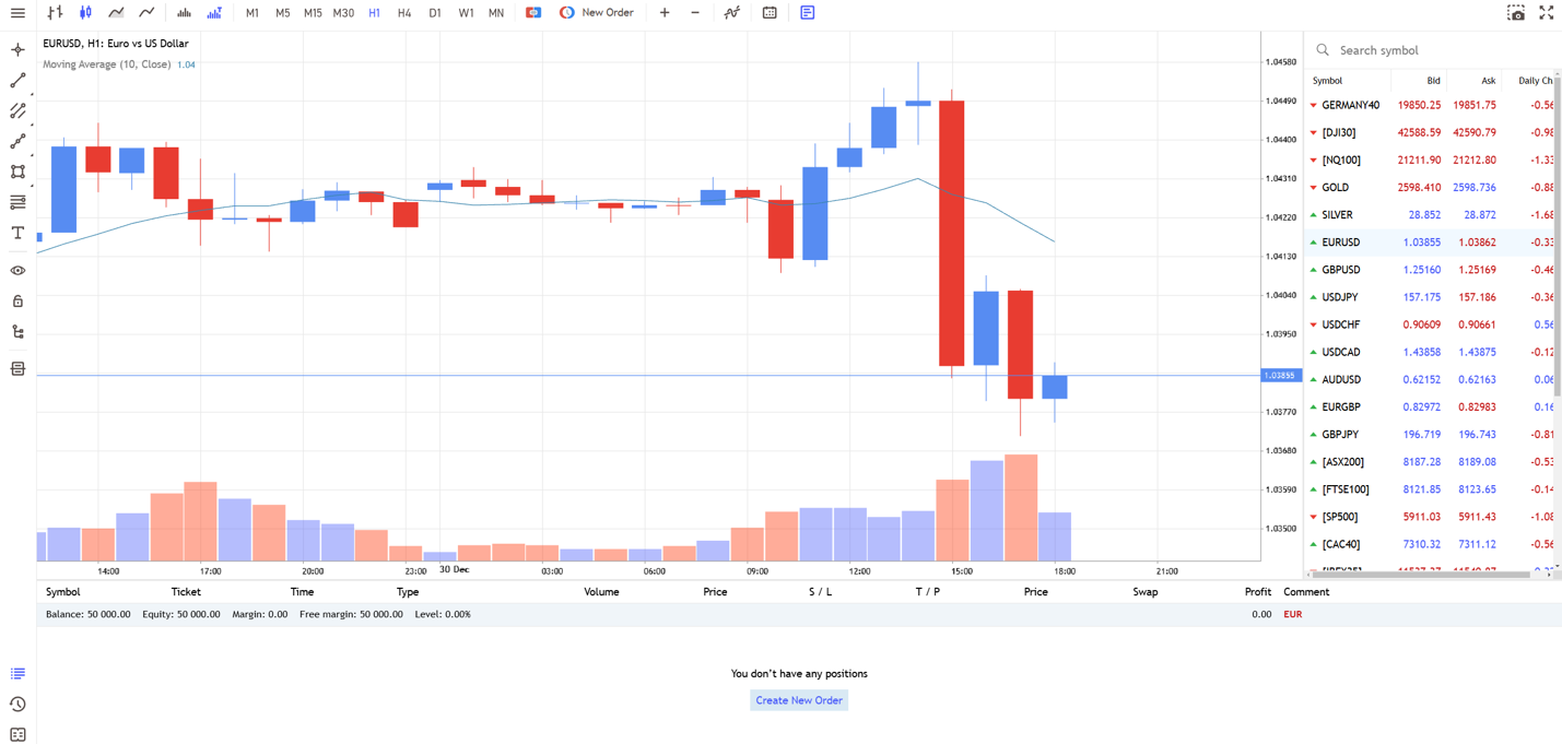 Comme avec la plateforme de trading MetaTrader, dans WebTrader nous pouvons ajouter des indicateurs à notre graphique pour analyser les marchés financiers. Cependant, veuillez noter que dans WebTrader nous ne pouvons pas ajouter d'Expert Advisor (EA).